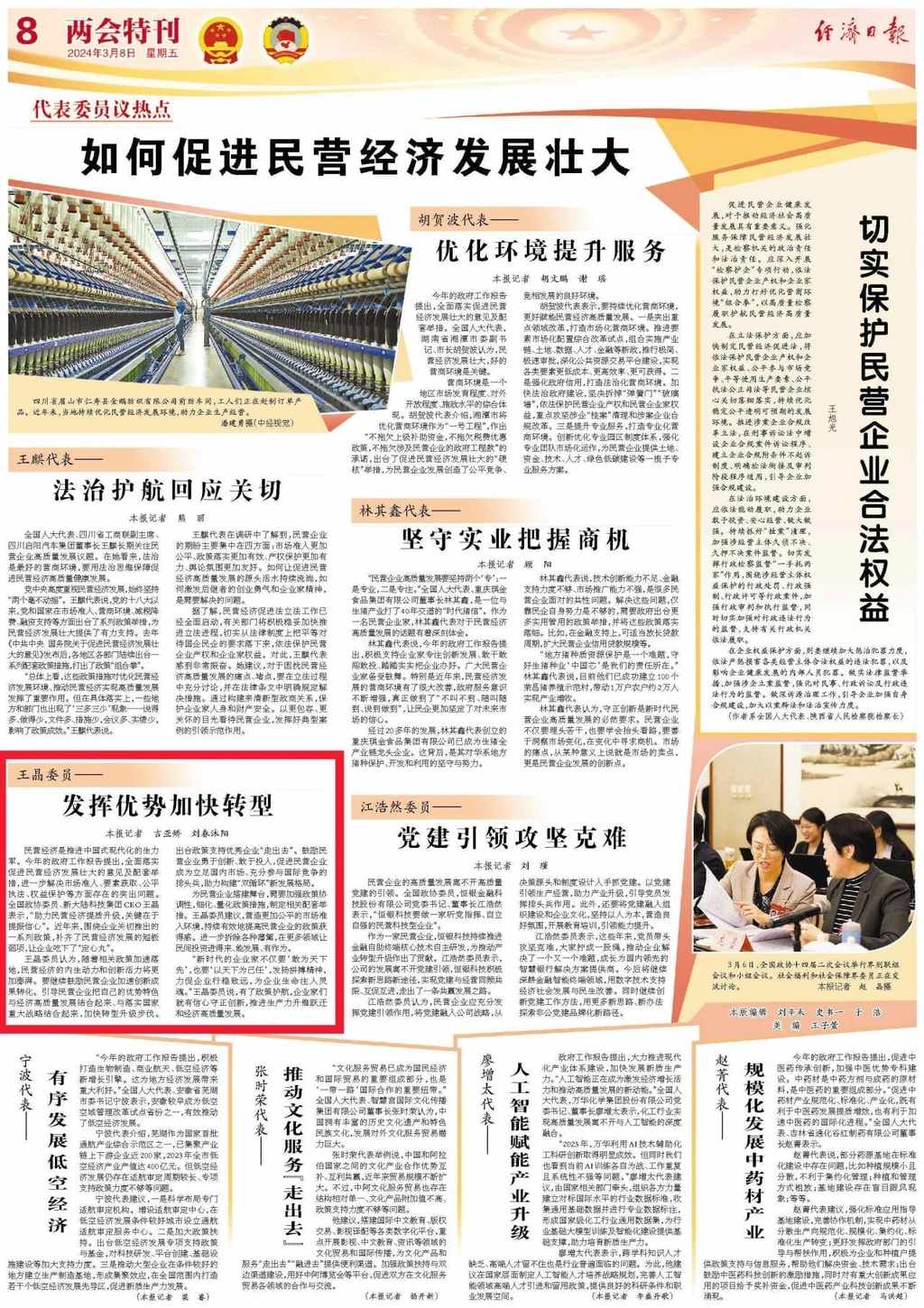王晶委員:發揮優勢加快轉型,促進民營經濟高質量發展