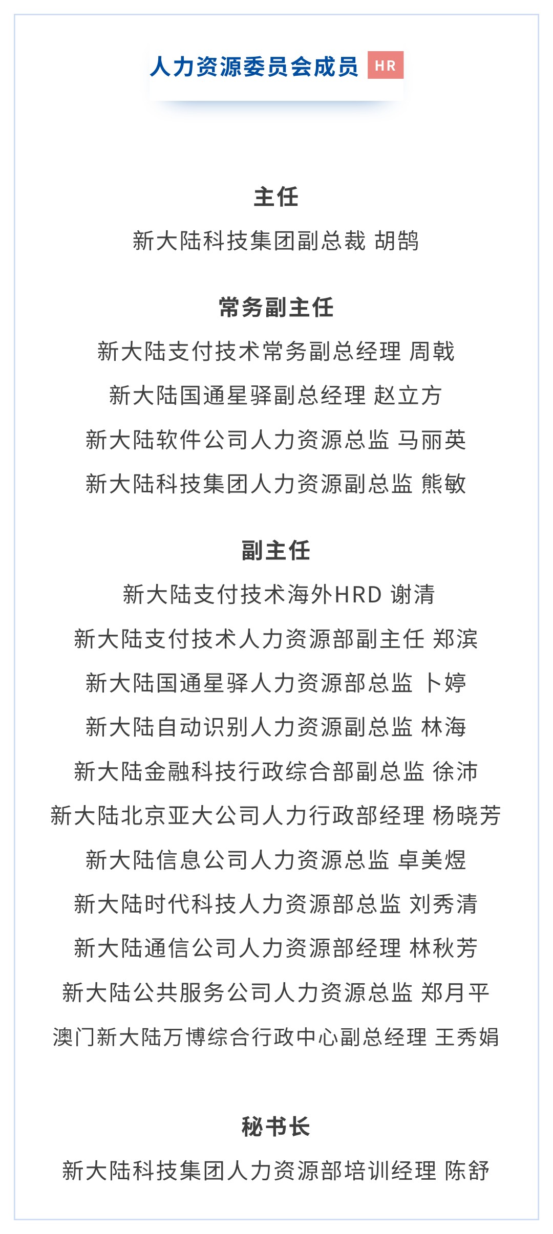 集團人力資源委員會的成立,標志新大陸將加快構建規范化、專業化、數字化的人力資源管理體系,強化人才培養與梯隊建設,提升整體競爭力,為集團戰略目標落地提供強有力的支撐。