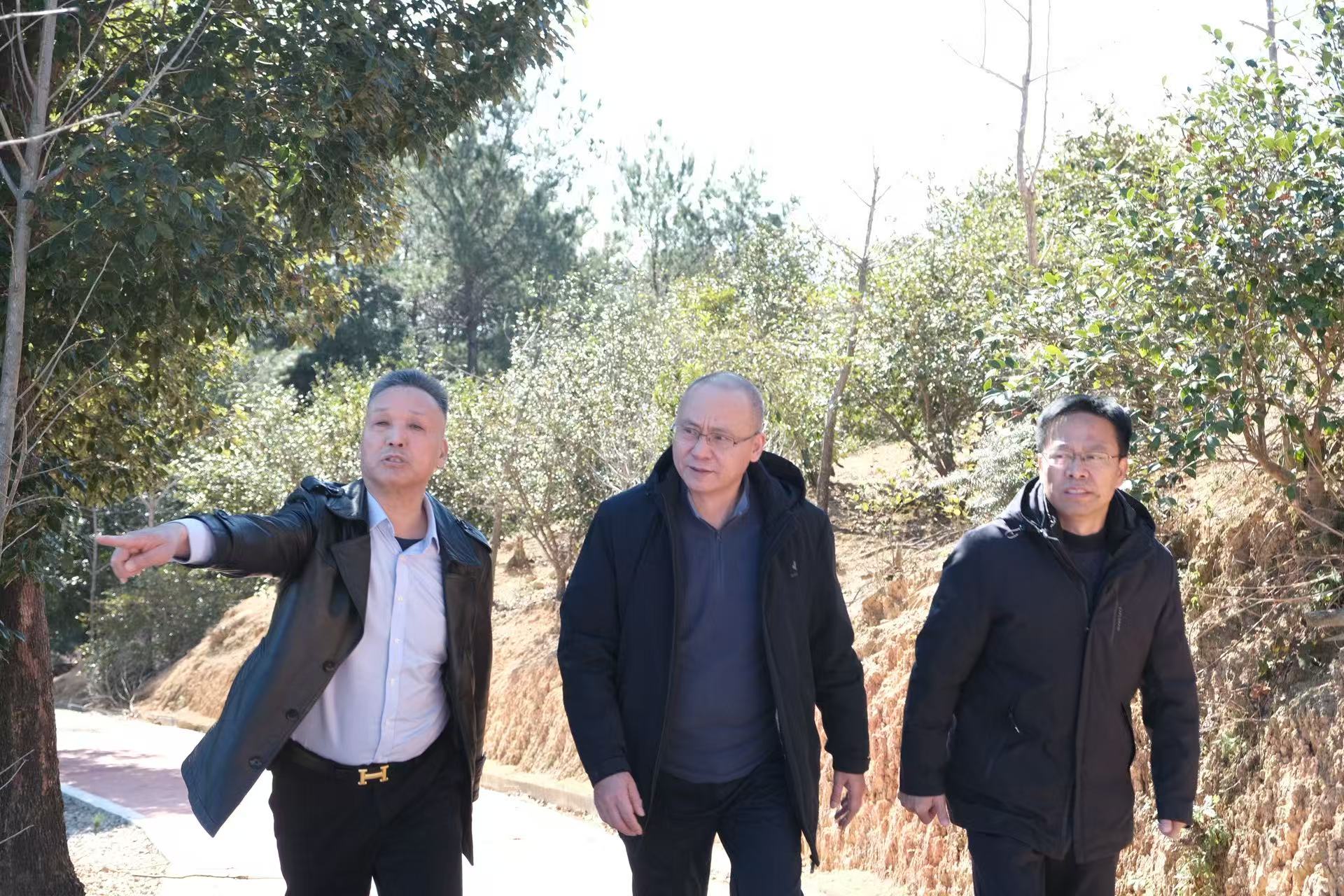 ? ? ? 在盧玉勝代表和湯炎燈書記的陪同下,大家深入西安村的田間地頭與養殖基地,實地察看鄉村振興的蓬勃景象。一行人首先走訪了連綿的銀杏林,金色褪去后枝干依然挺拔,孕育著生態與旅游融合發展的潛力;隨后步入油茶基地,滿山油茶綠意盎然,已成為村民增收的“綠色銀行”。